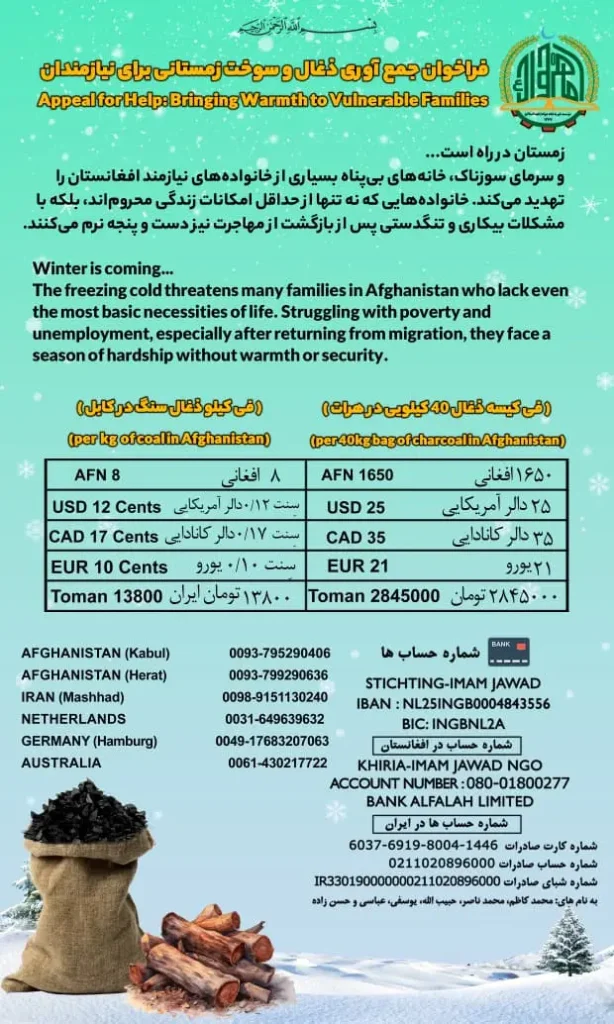 فراخوان جمع آوری کمک برای سوخت زمستانی نیازمندان افغانستان- سال 1404 هجری شمسی